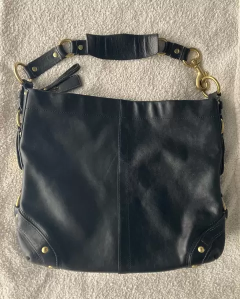 Bolsa de piel COACH. Hermosa bolsa COACH negra, de piel, súper amplia, en excelente estado, el único detalle se nota en ultima foto, nada que afecte su uso.