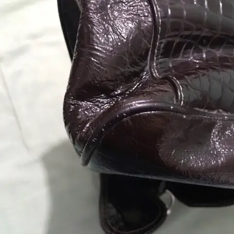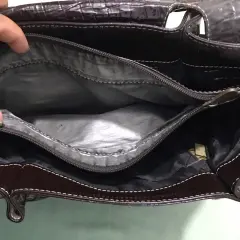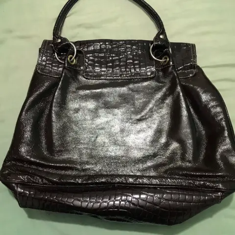 Bolsa amplia y hermosa color café con compartimentó adentro, tiene detalles de uso pero no afectan a su vista porque son muy leves
