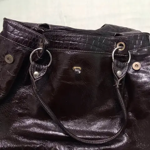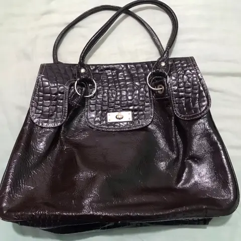 Bolsa de vinipiel café. Bolsa amplia y hermosa color café con compartimentó adentro, tiene detalles de uso pero no afectan a su vista porque son muy leves