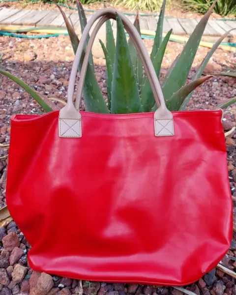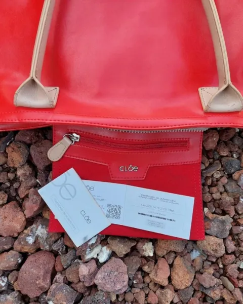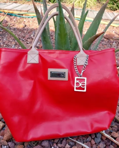 Bolsa grande CLOE. Bolsa color rojo con asas en color beige.Placa metálica de la marca en plata.Ligero desgaste del material exterior.Forro 100% textilExterior 100% sintéticoMedidas 32 de largo * 31 de ancho
