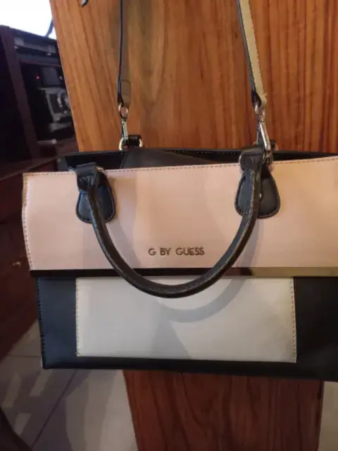 Bolsa GUESS rosa, beige y negro con asas y correas en buen estadoLargo 35 cm, alto 22 cm, ancho 20 cmBroches y cipers para resguardo de compartimentos
