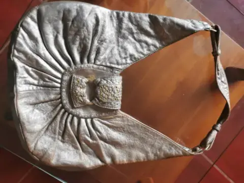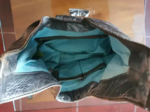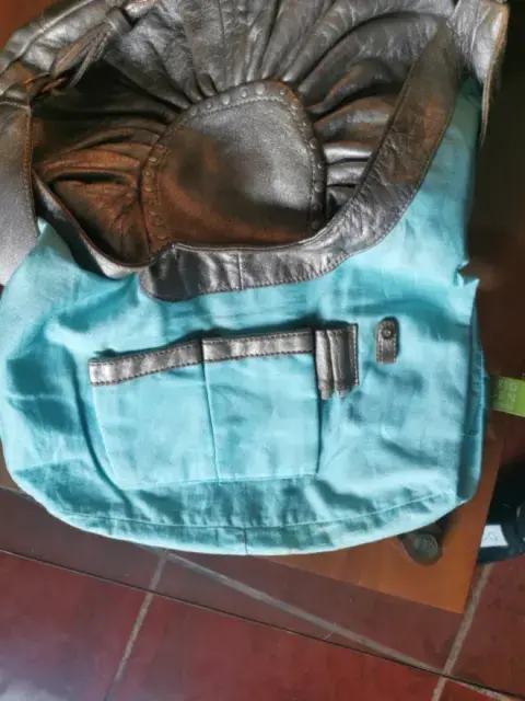 Hermosa bolsa de diseñador sigrid olsen en cuero plata y ocre amplia capacidad ha sido usadas en perfecto estado herrajes cintas cierres forro broches perfectos corre por ella