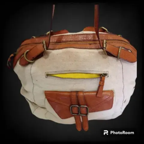 Bolsa de hombro Jessica Simpson material lino, algodón, piel. Grabado en broches delanteros, doble asa ajustable, recogidos laterales combinado en herraje piel y tela. Bolsa frontal cierre frontal, cierre principal con 3 compartimentos, sujetallaves y cierre en uno de ellos grabado de la marca en piel. Grabado en piel 3D en base forros en contraste amarillo brillante 46cm largo 36cm alto 16cm base