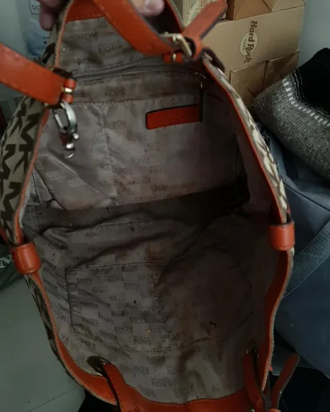 Bolsa original Michael Kors, sin detalles por fuera, con detalles por dentro específicamente manchas de tinta de pluma
