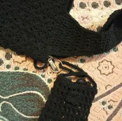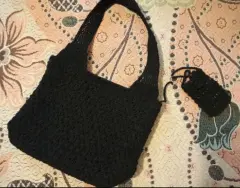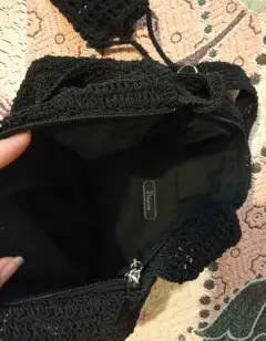 Bolsa negra tejida. Bolsa retro con monedero integrado, marca Divine. Poco uso, en buenas condiciones, el cierre funciona bien.