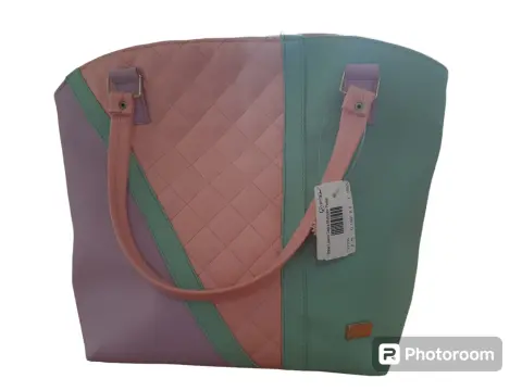 Bolsa para Dama multicolor rosa-verde-morado con cierre interno, medidas 30 cm largo, 30 cm altoy 12 cm ancho, nueva ,marca Nueva Imagen