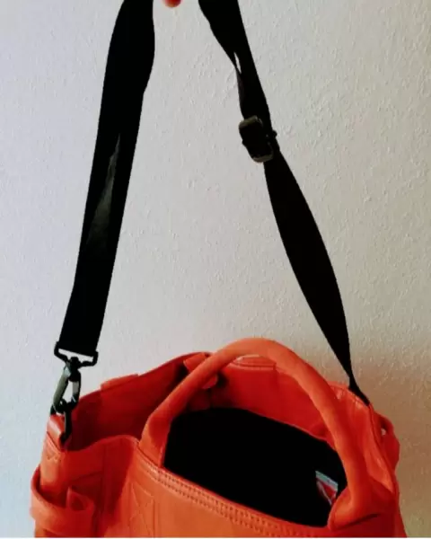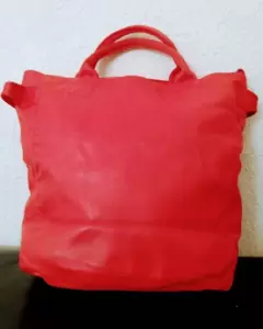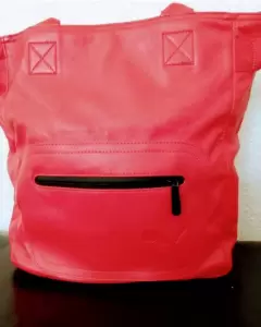 Hermosa bolsa en vinipiel color Tangerina, con un asa corta y una larga, bolsa pequeña con cierre frontal y por dentro una bolsa sin cierre y otra con cierre, esta hermosa. Todas mis prendas son originales y siempre en excelente estado