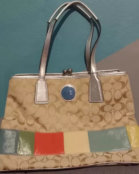 Bonita bolsa coach multicolor, sin detalles, está en excelente estado, las asas se encuentran impecables, se cierra con broche tipo monedero, no te arrepentirás cuando las tengas.Acepto ofertas