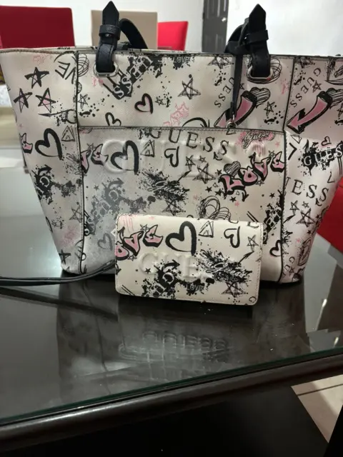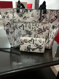 Bolsa y cartera Guess, mismo diseño, tiene detalles de uso nada más.