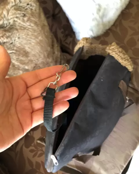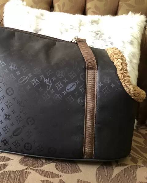 Lindo bolso transportador para mascota; te lo puedes llevar a donde quieras. Cuenta con broche interno para collar. 40cm largo, 24cm ancho y 28cm alto.