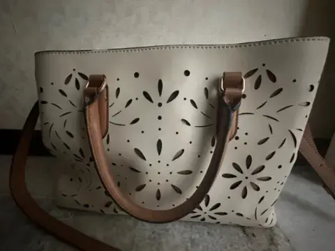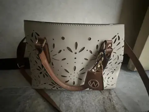 Bolsa grande blanco con café, marca westie, en perfecto estado sin detalles