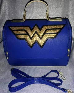 Bolsa tipo maletín Wonder Woman, el logo es bordado, trae correa para hacerla cruzada.