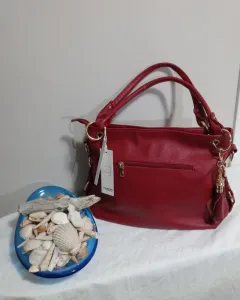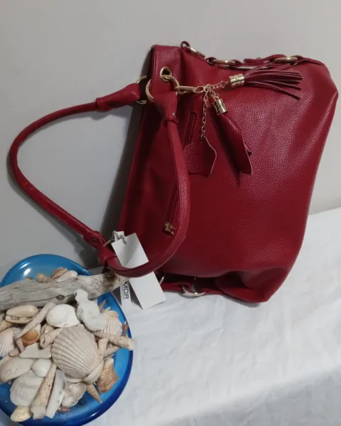 Bolso de piel AMOR PROFONDO. Bolso 100% piel color guinda (púrpura oscuro) varios compartimentos , compartimento de cierra exterior 2 compartimentos con cierre interior..