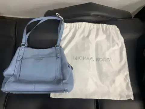 Hermoso bolso MK original color baby blue, usado una sola vez está impecable sin detalles! Es de piel y tiene varios compartimientos, muy espaciosa le cabe todo!