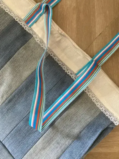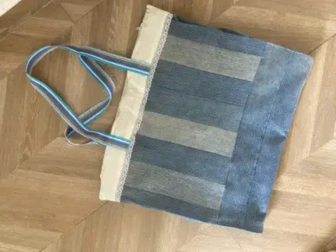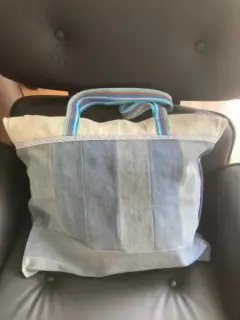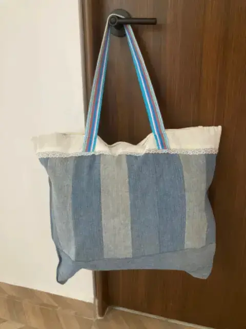 El mercado tradicional nos ha querido inculcar la fórmula del usar y tirar, sin embargo con la filosofía del cuidado del medio, quise aportar a esta causa, reutilizando un pantalón de mezclilla y transformarlo en una maxibolsa, así que es diseño único, y lucirás hermosa con ella!No esperes costuras perfectas, porque es una pieza artesanal.Tiene cierre y forro de manta.