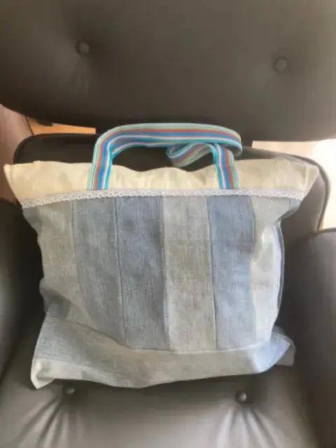 Maxibolsa de mezclilla reciclable!. El mercado tradicional nos ha querido inculcar la fórmula del usar y tirar, sin embargo con la filosofía del cuidado del medio, quise aportar a esta causa, reutilizando un pantalón de mezclilla y transformarlo en una maxibolsa, así que es diseño único, y lucirás hermosa con ella!No esperes costuras perfectas, porque es una pieza artesanal.Tiene cierre y forro de manta.