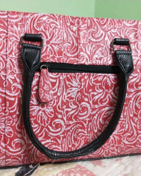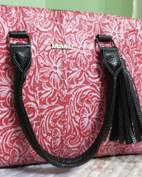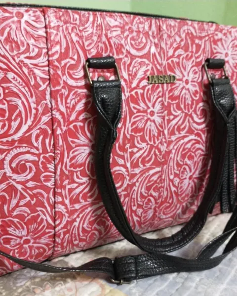 Maxibolsa roja con estampado floral con negro. Totalmente nueva, de piel, con correa aparte para llevarla del hombro, o como se te haga más cómodo. ☺️