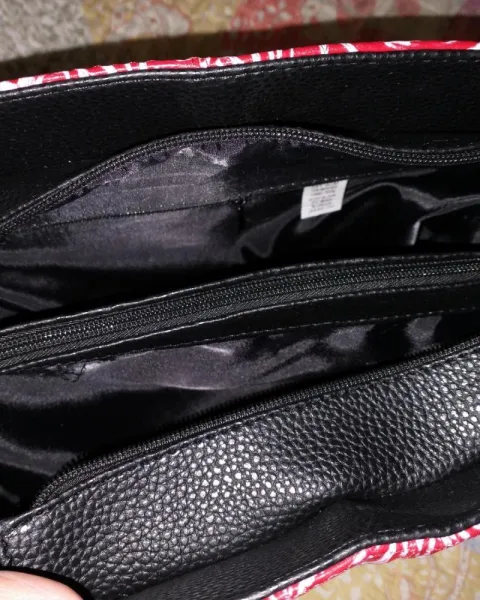 Maxibolsa de piel. Maxibolsa roja con estampado floral con negro. Totalmente nueva, de piel, con correa aparte para llevarla del hombro, o como se te haga más cómodo. ☺️