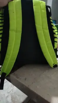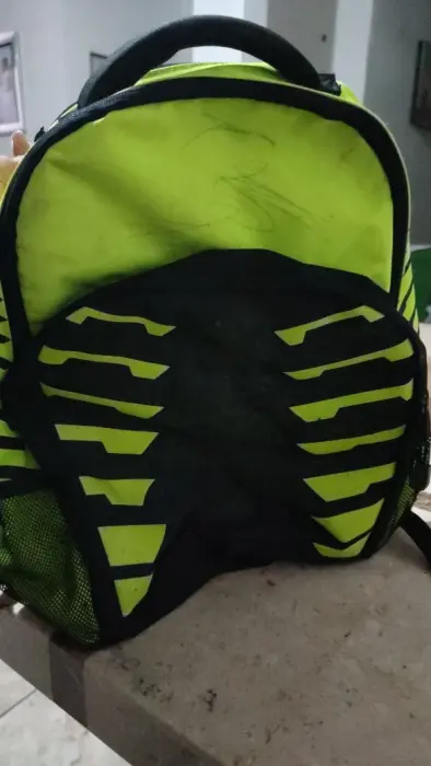 Mochila negra con verde. En buen estado, sólo un rayón de pluma, pero no afecta, para estudiante ,muy amplia. Del interior