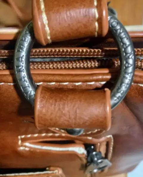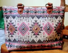 Hermosa bolsa con remachesy tachuelas muy práctica en tonos rosados y patrón azteca. Tal yal las fotos, ligeros detalles de desgaste.