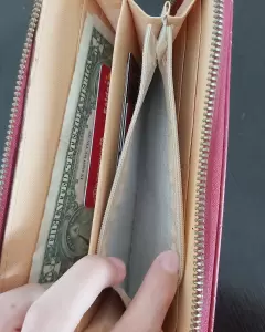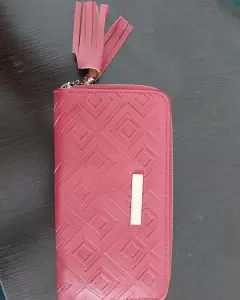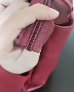 Bolsa con detalle solo lo del cierre lo demás esta bien y la cartera los olanes están sueltos y no tienes cierre de adentro del compartimiento de las monedas, no afecta su uso.