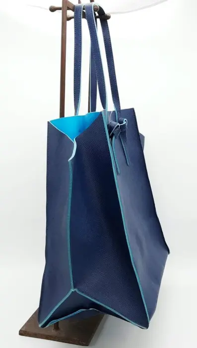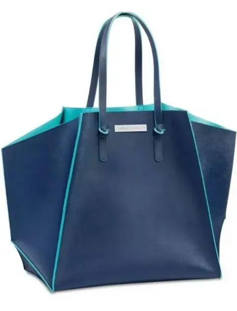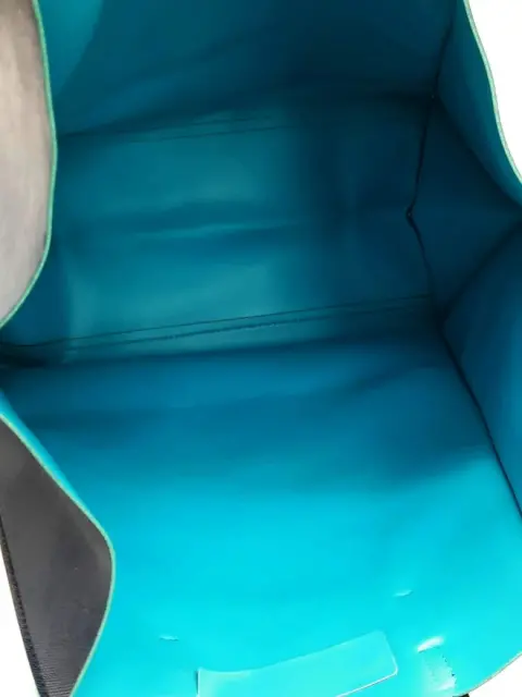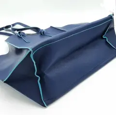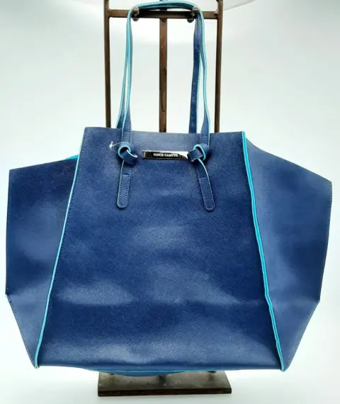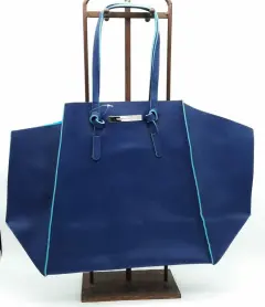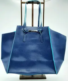 Bolso extragrande Vince Camuto en color azul marino con ribete e interior turquesa. Material de PVC. ¡Sería perfecto para una bolsa de playa o una bolsa de equipaje de mano o una bolsa de viaje de fin de semana!Medidas AproxLargo 59 cmsAlto 38 cmsAncho 21 cms