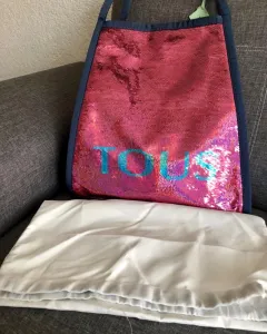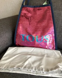 Shopping Tous Mezclilla. Shopping Colección T Colors Fucsia Jeans de tejano hidrófugo combinado con lentejuelas. Cierre a presión. Asa larga ajustable y asas del hombro. Medidas : 36 x 36 x 4 cm.