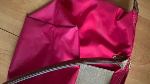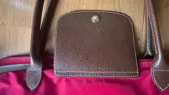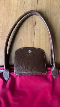 Auténtica Tote « Le Pliage » Original roja de nylon tamaño grande, cierre y broche de presión dorados perfecta para usarse en un viaje porque le cabe mil!! Tiene dos esquinas desgastadas por el uso, solo hace falta un poco de limpieza.