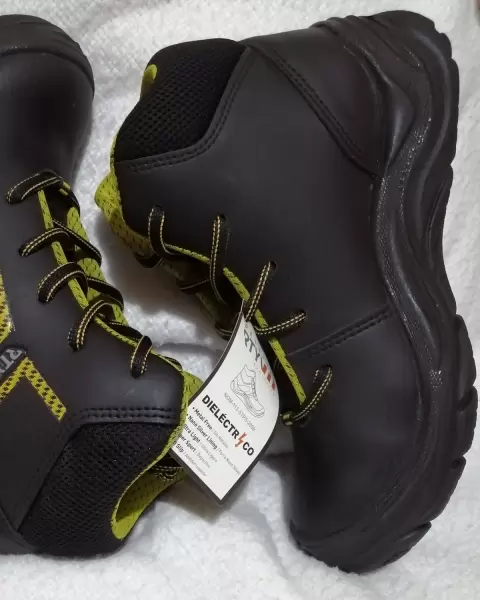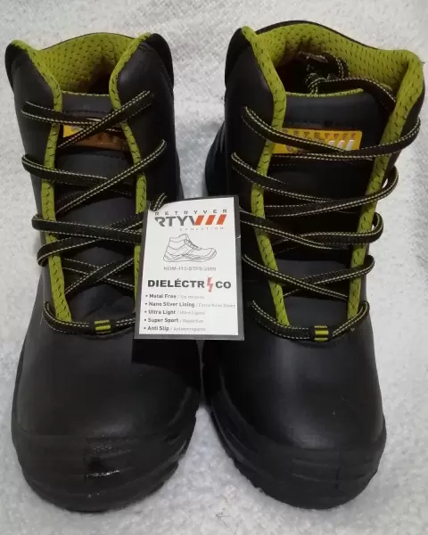 Bota Industrial Dieléctrica Negra, Ligera, suela antiderrape, Casco de poliamida (metal free) con platilla de tecnología nanopartículas que te mantiene fresca. México acomoda número #23cm. Visita mi espacio para mas modelos o númeración. Tu primer compra en la App tiene descuento.