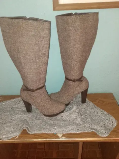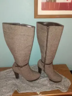 Hermosas botas a la rodilla, jaspeadas en color café, tacón alto y grueso 10 CMS, seminuevas si acaso 3 puestas, excelente oportunidad