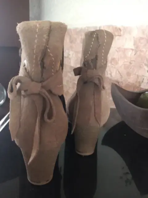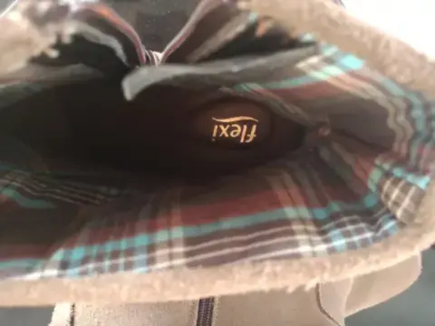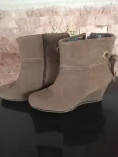 Bota tacón puente, de gamusa color cafe claro. Excelente estado sin detalle. Marca Flexi 5.5