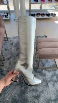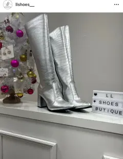 Bota alta Plata. Bota nueva Color Plata, altura abajo de la rodilla, tacón 9 cm, disponible en #3 y #5