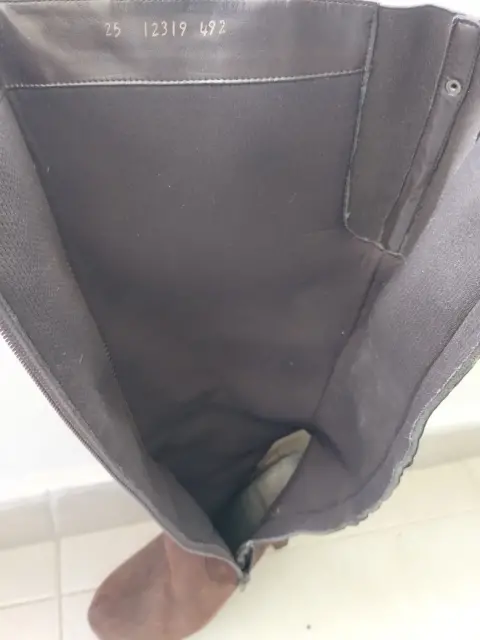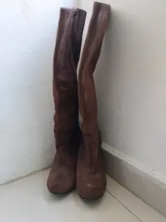 Bota tipo gamuza color café,tubo hasta la rodilla talla número 25 solo dos puestas excelentes condiciones