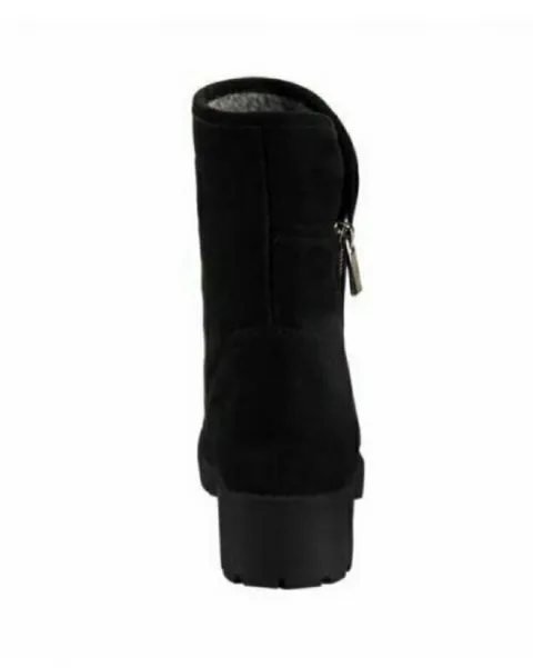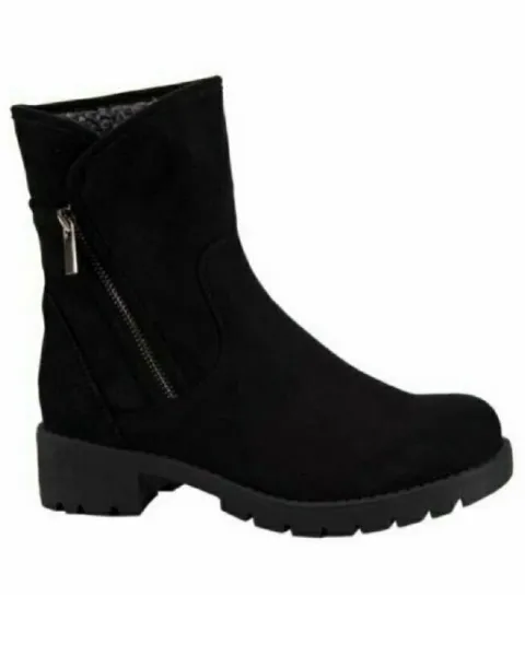 Bota corta. Bota corta talla 23, color negro, con cierre, el material parece ante, tela aborregada por dentro, tacon ancho aprox. 3.5 cms., muy comodas, solo se usaron 1 vez.