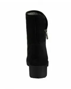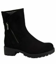 Bota corta talla 23, color negro, con cierre, el material parece ante, tela aborregada por dentro, tacon ancho aprox. 3.5 cms., muy comodas, solo se usaron 1 vez.