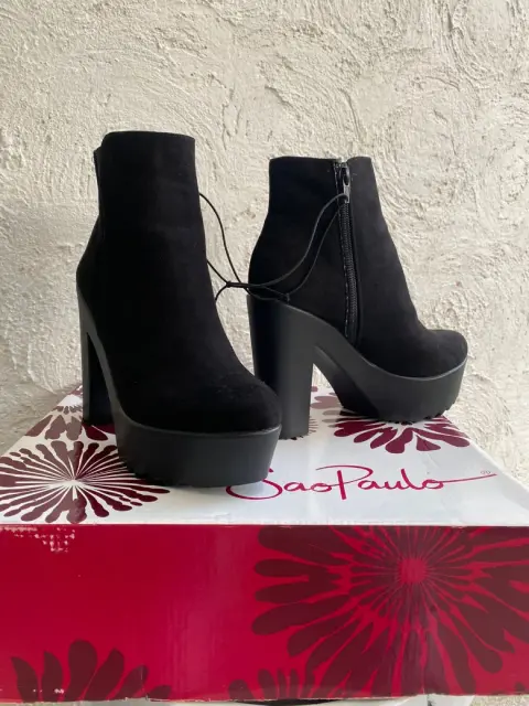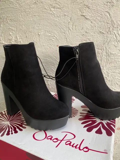 Bota tacón de plataforma tipo ante de piel talla #5 tiene no tiene uso es nueva