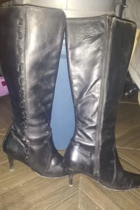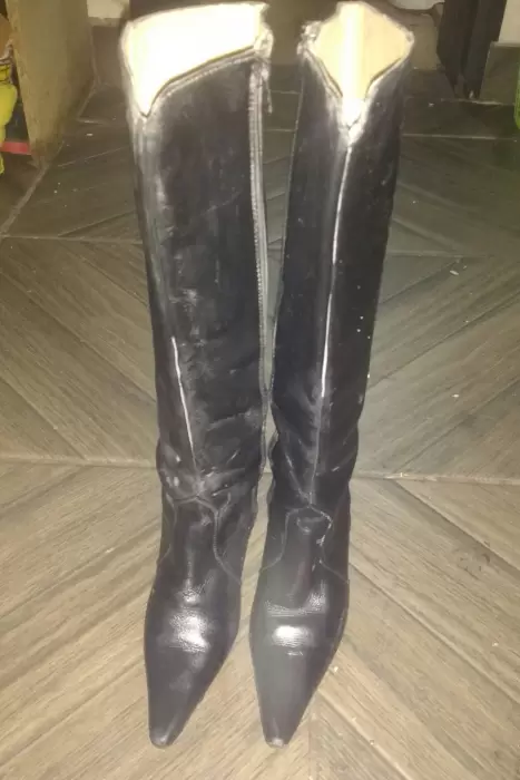 Bota larga tacón de aguja negro. Bota larga tacón de aguja de piel forro sintético con cierre a un costado suela de cuero