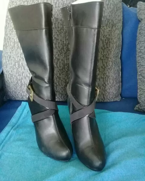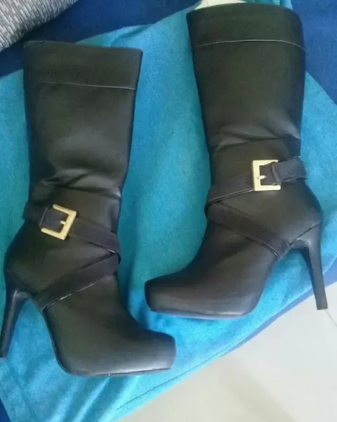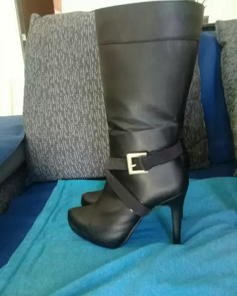 Bota de tacón con ligera plataforma en buen estado de una sola puesta. Lo largo es hasta abajo de la rodilla.Cierre a los costados en buen estado.Tacones y suela en buen estado.