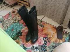 Botas. Talla 23.5 color negro, usado en buen estado, con cierres al lado, excelente precio