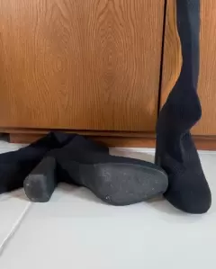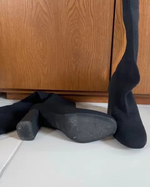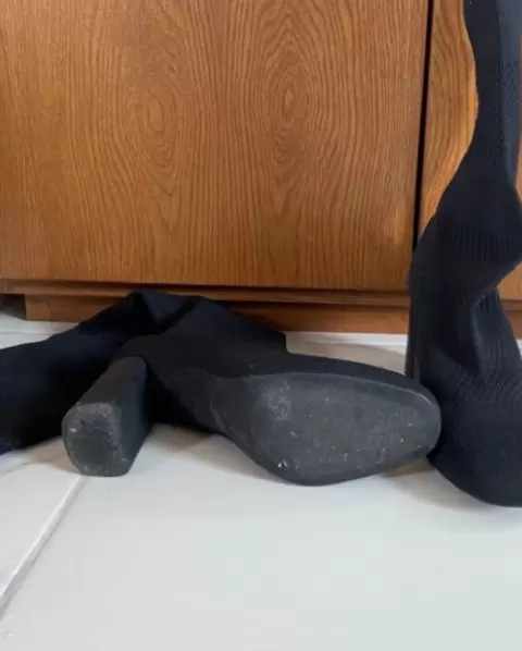 Botas arriba de la rodilla, con tacón ancho y alto de 8 centímetros, se pueden usar con faldas y con pantalones, comidas para caminar ya que la tela es elástica y se adapta al pie, no aprietan para nada.