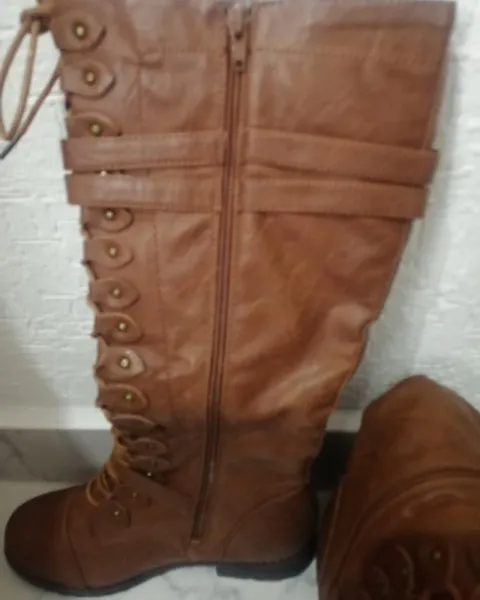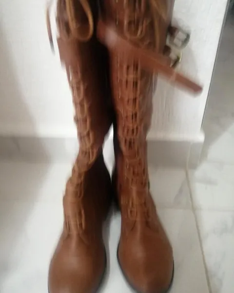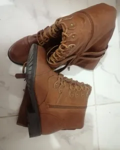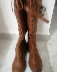 Botas altas estilo militar estilo piel color whisky nuevas completamente y con su caja original, las dejo en su precio casi igual porque honestamente jamás les pude dar uso, estan hermosas pero no he podido darles uso, sin daño alguno, espero que alguien pueda darles uso ya que si están super bonitas y quedan por debajo de la rodilla ajustables.
