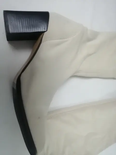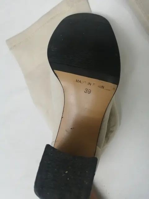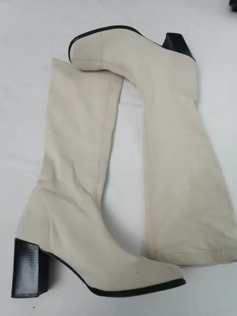 Botas largas color beig número 5 tacon del #8 cuadrado de tela ajustable en pierna