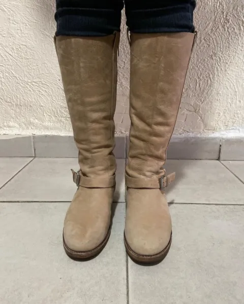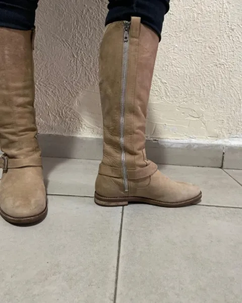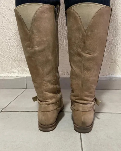 Botas largas tipo de montar con cierre plateado y hebillas en excelente estado