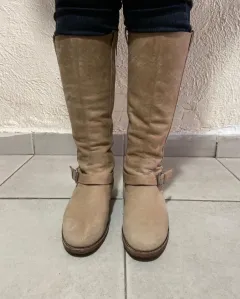 Botas beige Cole Hann Air NIKE. Botas largas tipo de montar con cierre plateado y hebillas en excelente estado