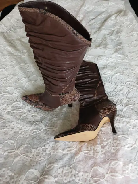 Hermosas Botas largas, cafés, altura de tacón 10, piel vacuno, número 5. Excelentes condiciones!