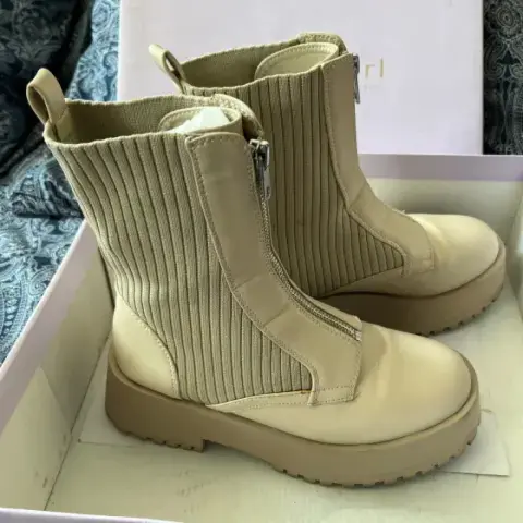 Botas Claras Madden Girl.. Color claro, poco uso, muy cómodas 3.5. Los cierres funcionan perfectamente bien y no se bajan al andar.