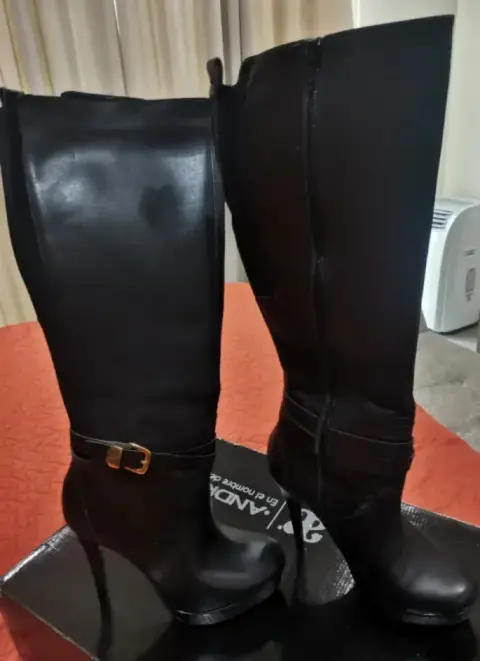 Botas Color negro No. 4. Botas de tacon num 12 cm, con plataforma de 2 cm, a la rodilla con cierre, color negro número 4, marca Andrea.