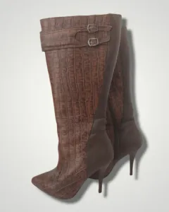 Botas con print de cocodrilo color café, tacón de 10 cm. Quedan a 4 y 4.5.