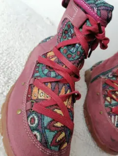 Botas corte artesanales de gamuza. Descripción:Hermosos BOTINES de GAMUZA corte FASHIONISTA tipo invernales con estampado corte artesnal talla 7.5USA 4.5MX FIEL A TALLA AMPLIOS EXELENTES CONDICIONES sucios amplias de empeine suela tipo antiderrapante ciper metalico herrajes metálico color dorado