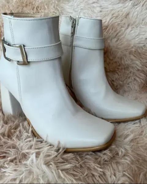 Botas cuadradas. Botas color blanco con punta cuadrada. Talla 24 Material Nairobi. Marca Gabriela. Totalmente nuevas.